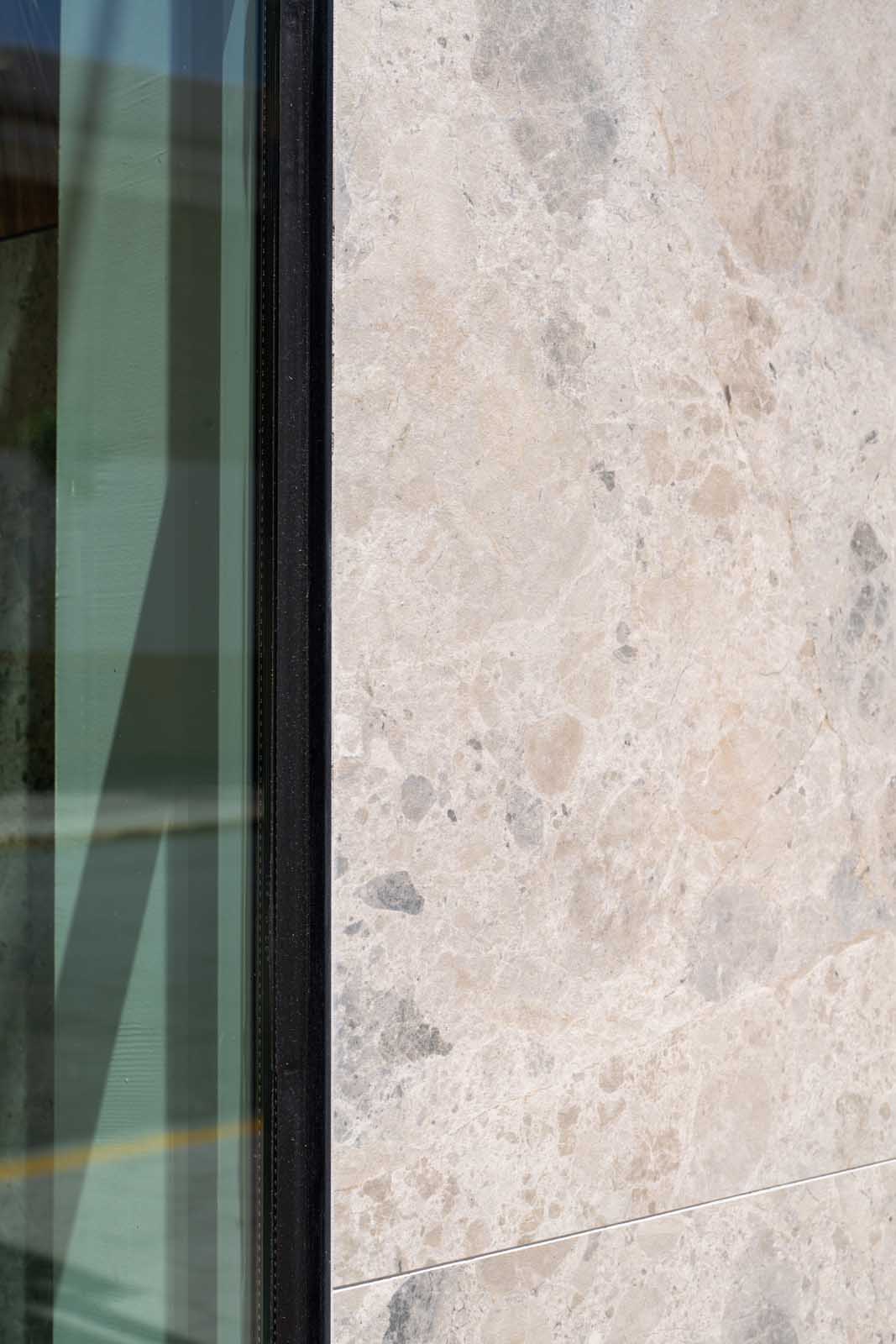 For the floor and part of the cladding, the Eterna Mix Multicolor collection in the 60×60 cm format was chosen, a stone-effect porcelain stoneware characterized by marble inserts on the surface.