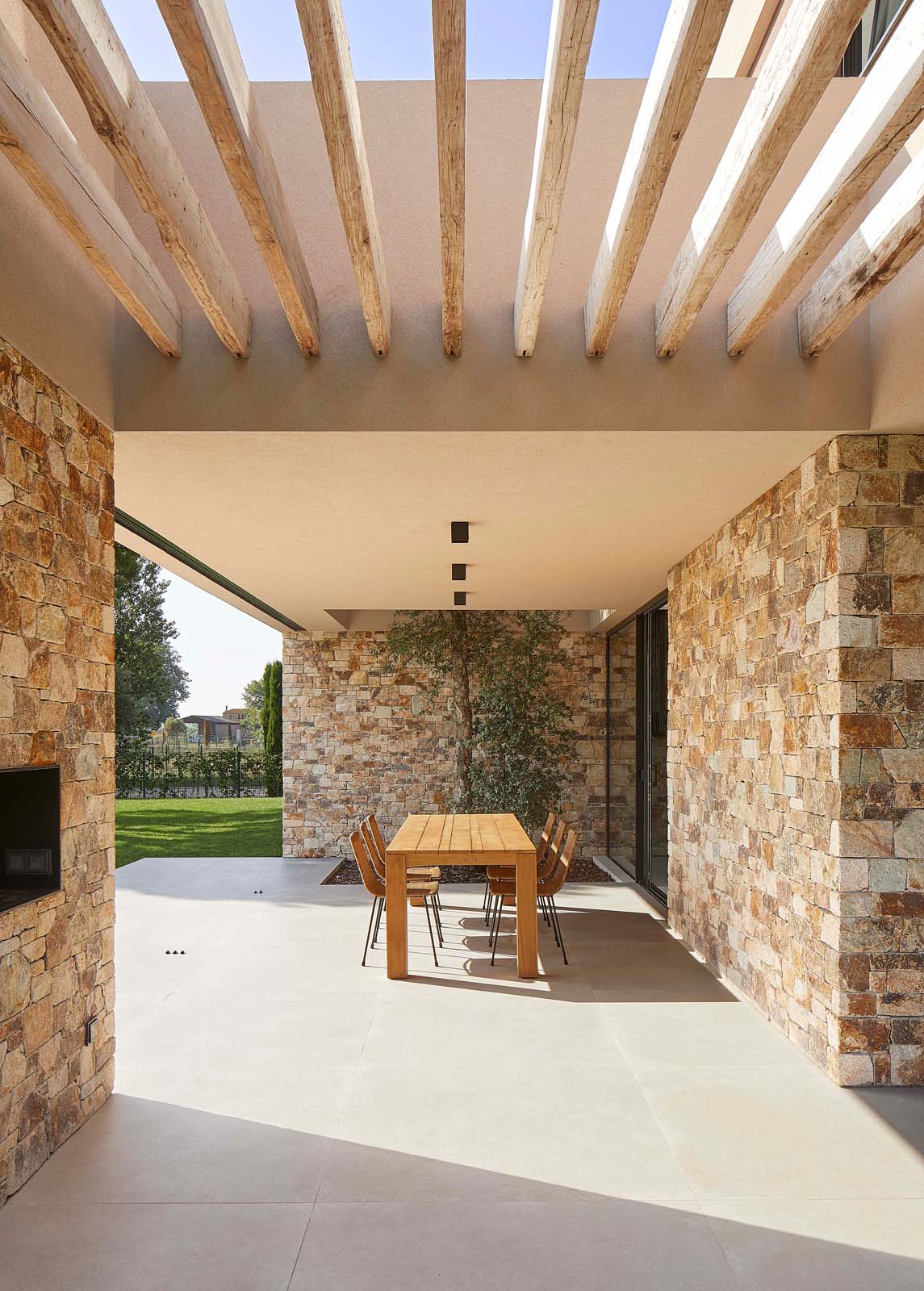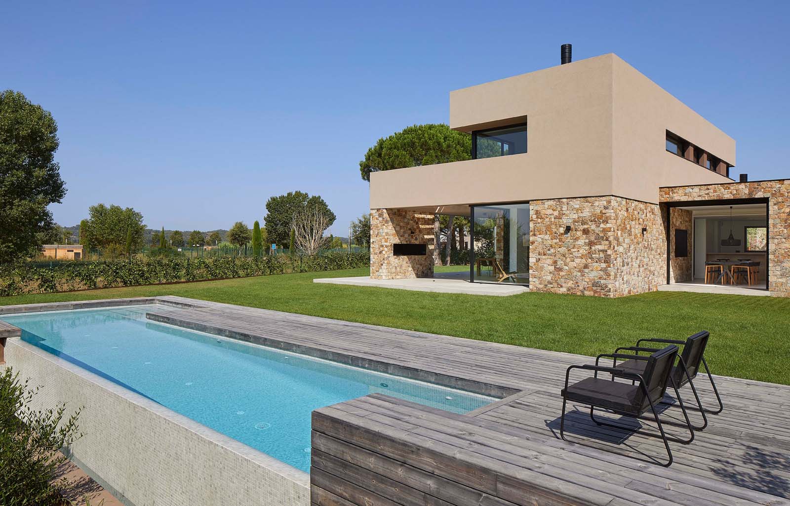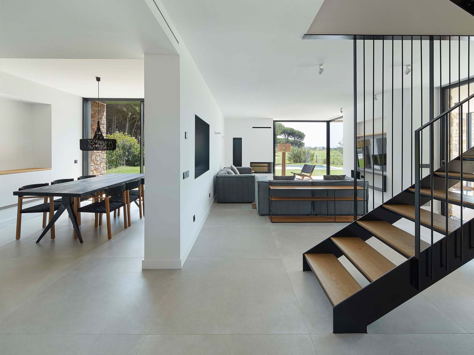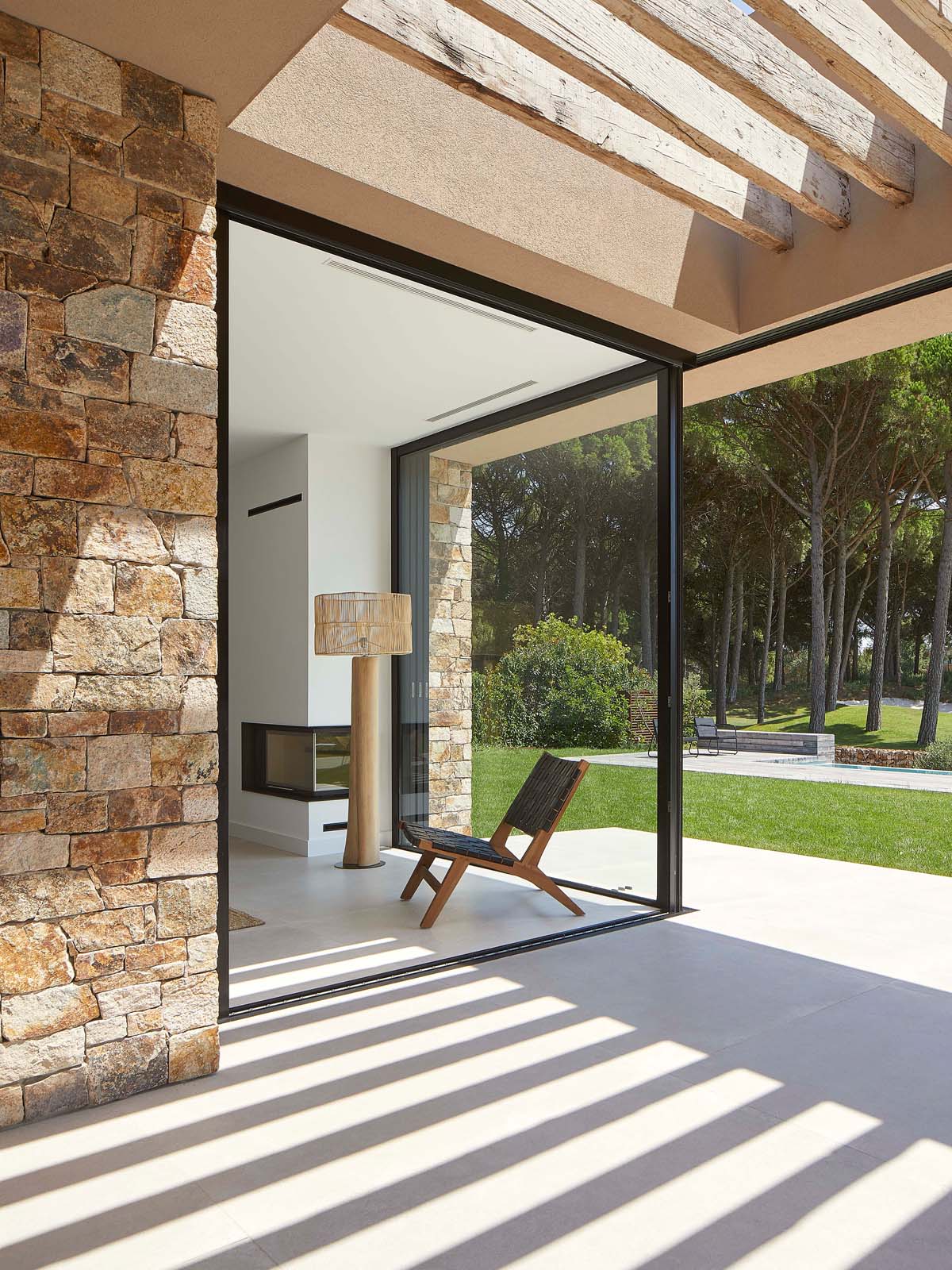 The Jané & Font architectural firm conceived the entire building as a minimal, modern volume with an interior that projects outwards thanks to the porch that further extends the floor plan.
