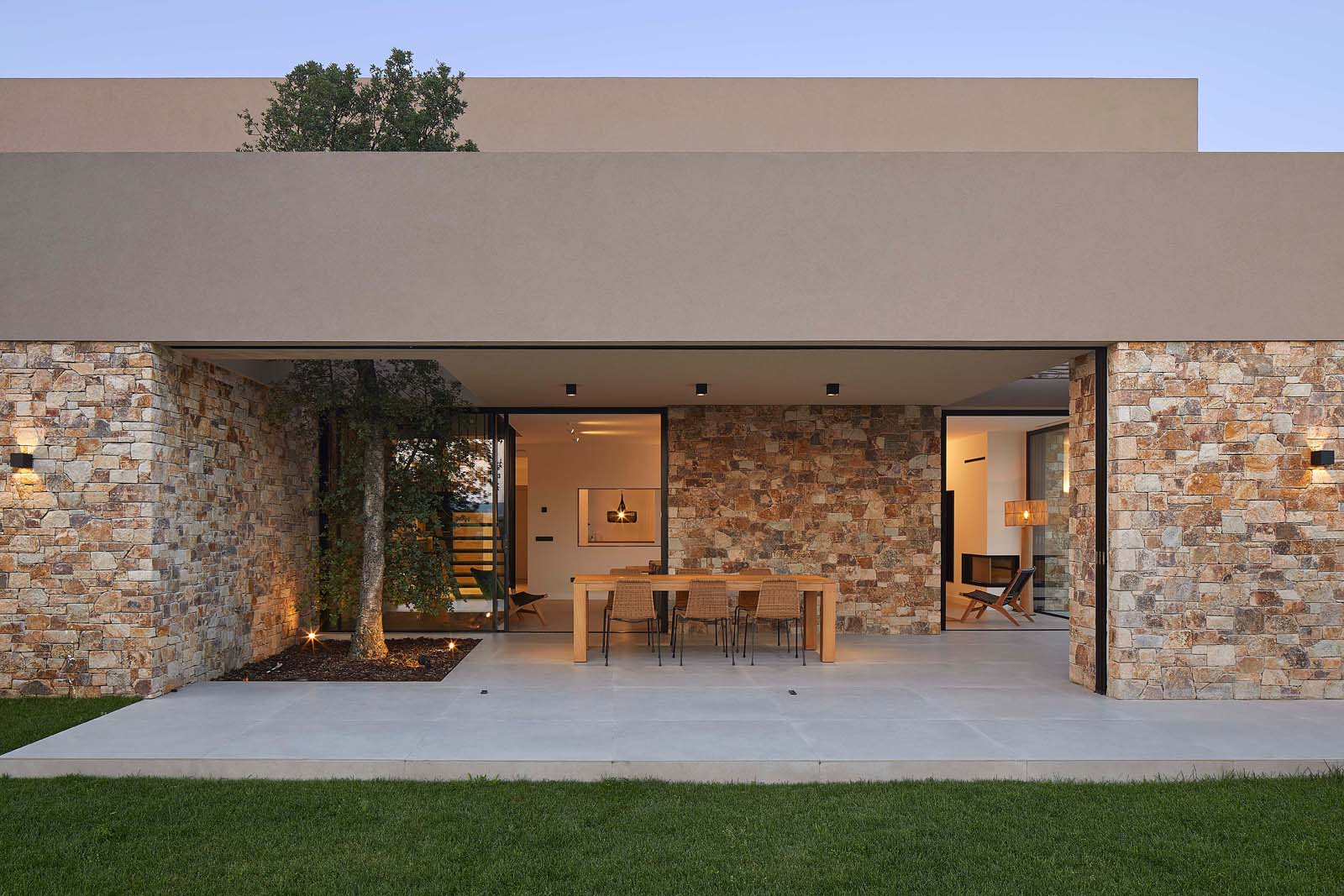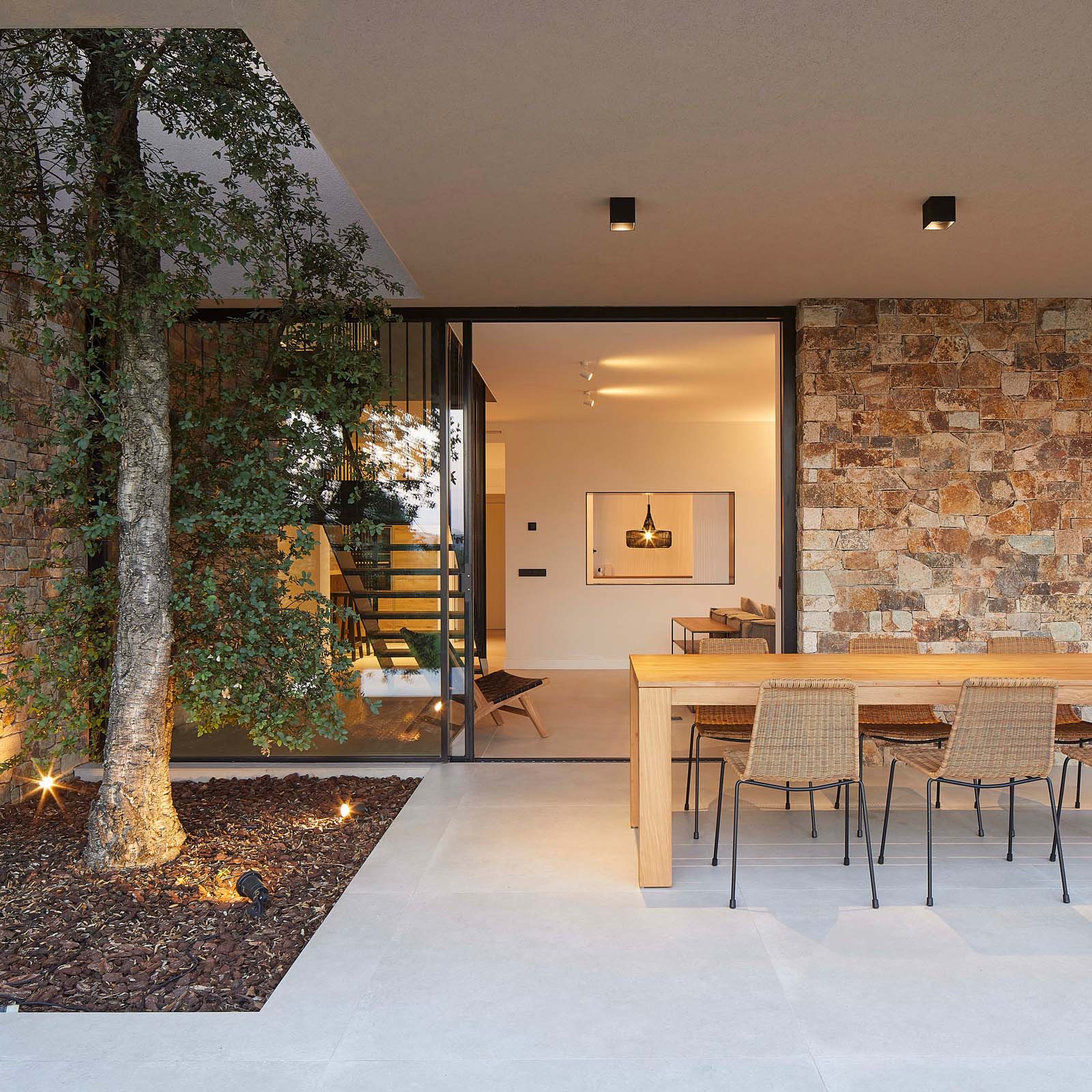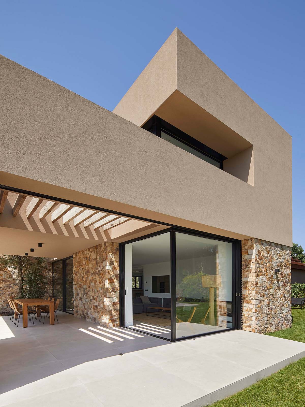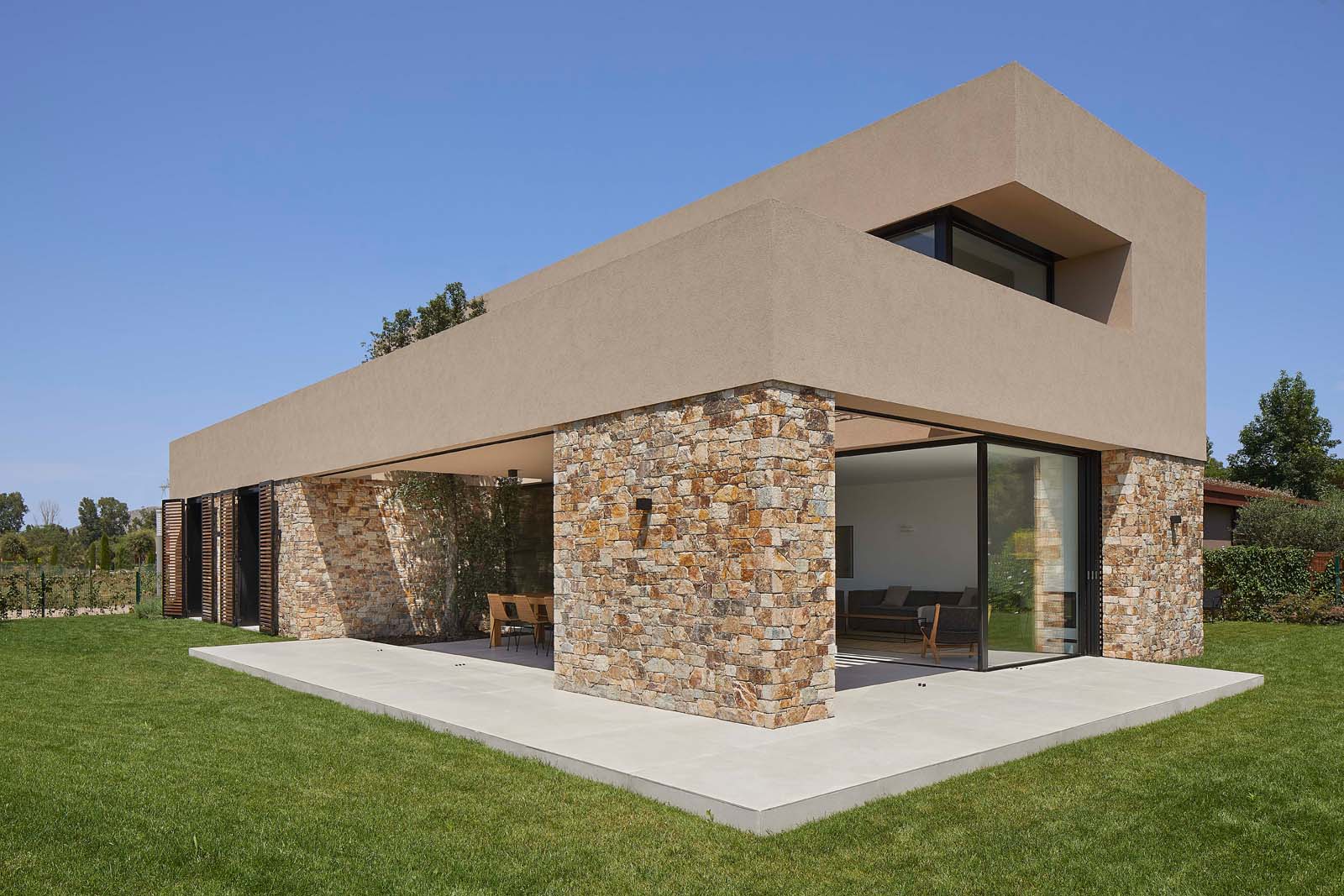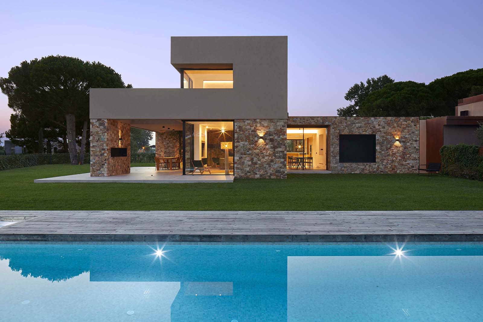 The Jané & Font architectural firm conceived the entire building as a minimal, modern volume with an interior that projects outwards thanks to the porch that further extends the floor plan.