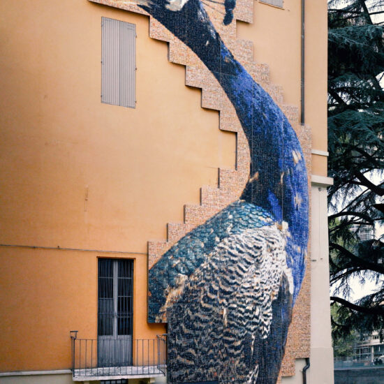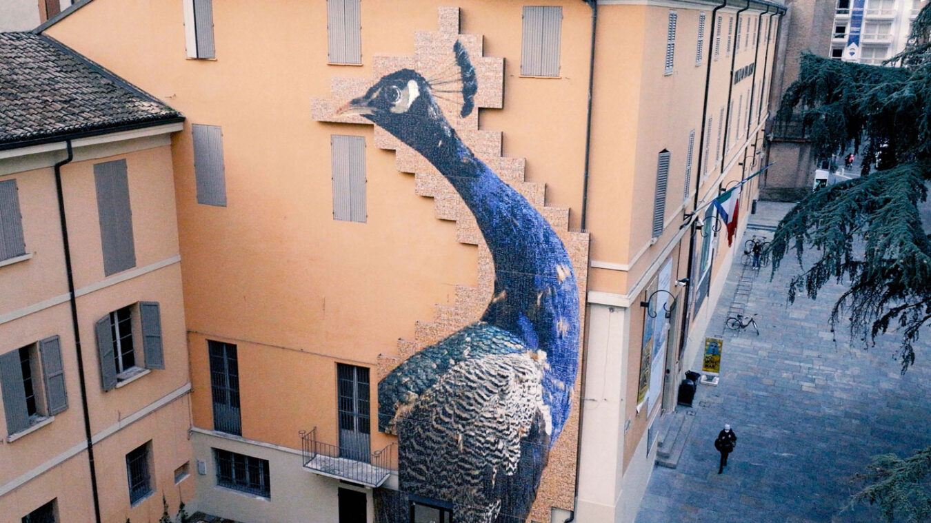 Curiosa Meravigliosa is a gigantic permanent public artwork created by Catalan artist Joan Fontcuberta for the Palazzo dei Musei in Reggio Emilia with assistance from the company. It originated in a participatory process in which thousands of city residents sent in one or more photographs – giving a total of more than 12 thousand images – on the themes of curiosity and wonder, the founding themes of the collections housed in the building. The call for photographs received an amazing response and Joan Fontcuberta digitally reprocessed the thousands of images acquired and reassembled them together with photographs of the objects in the museums’ collections to make up a single large image of a peacock, a subject chosen by the artist from the institution’s zoology collections.