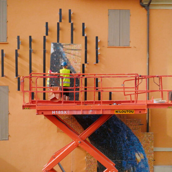 The work – a massive sixteen metres high – was designed and installed on the facade of the Palazzo dei Musei thanks to a partnership between the City of Reggio Emilia (Musei Civici) and the company which, through its specialised Engineering division, oversaw the production of the ceramic slabs that make up the work and hosted Fontcuberta during the production and digital printing phases.