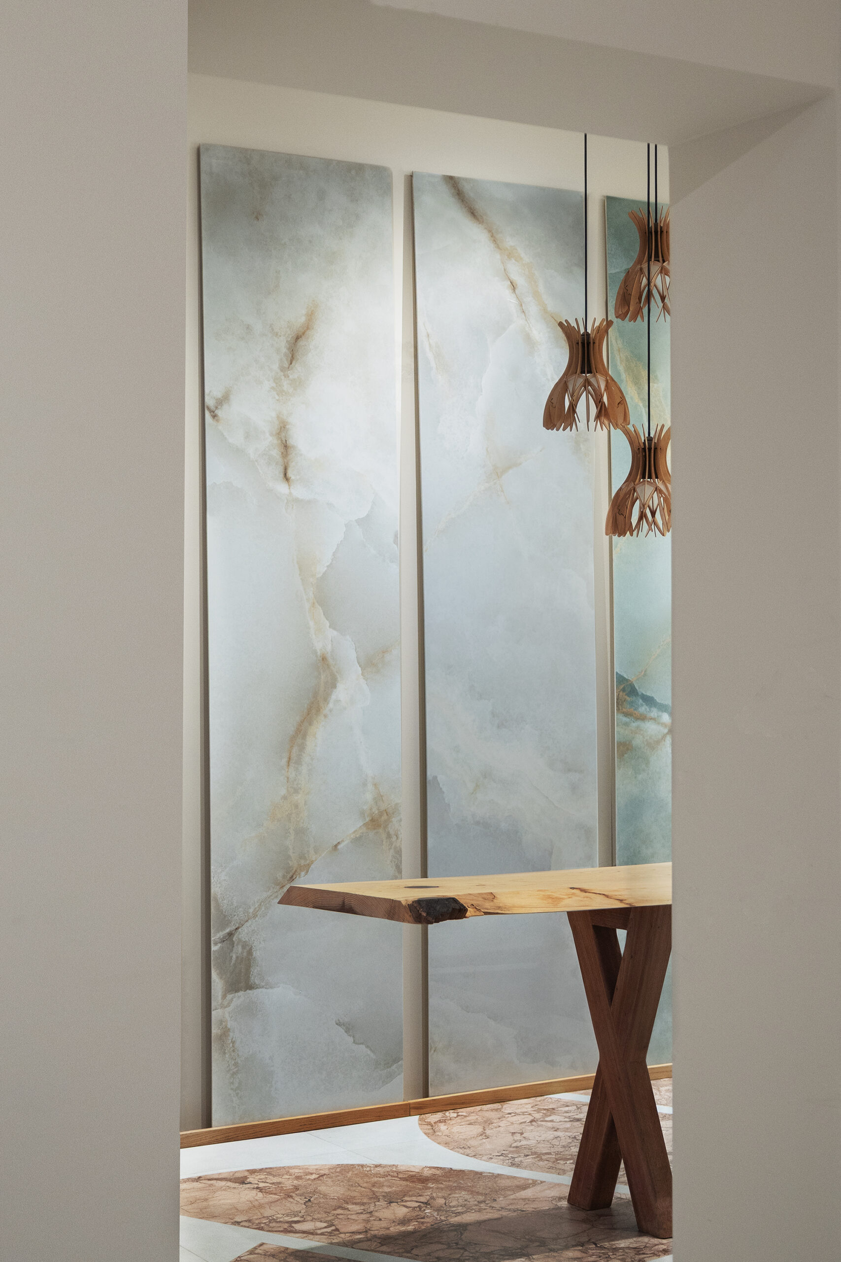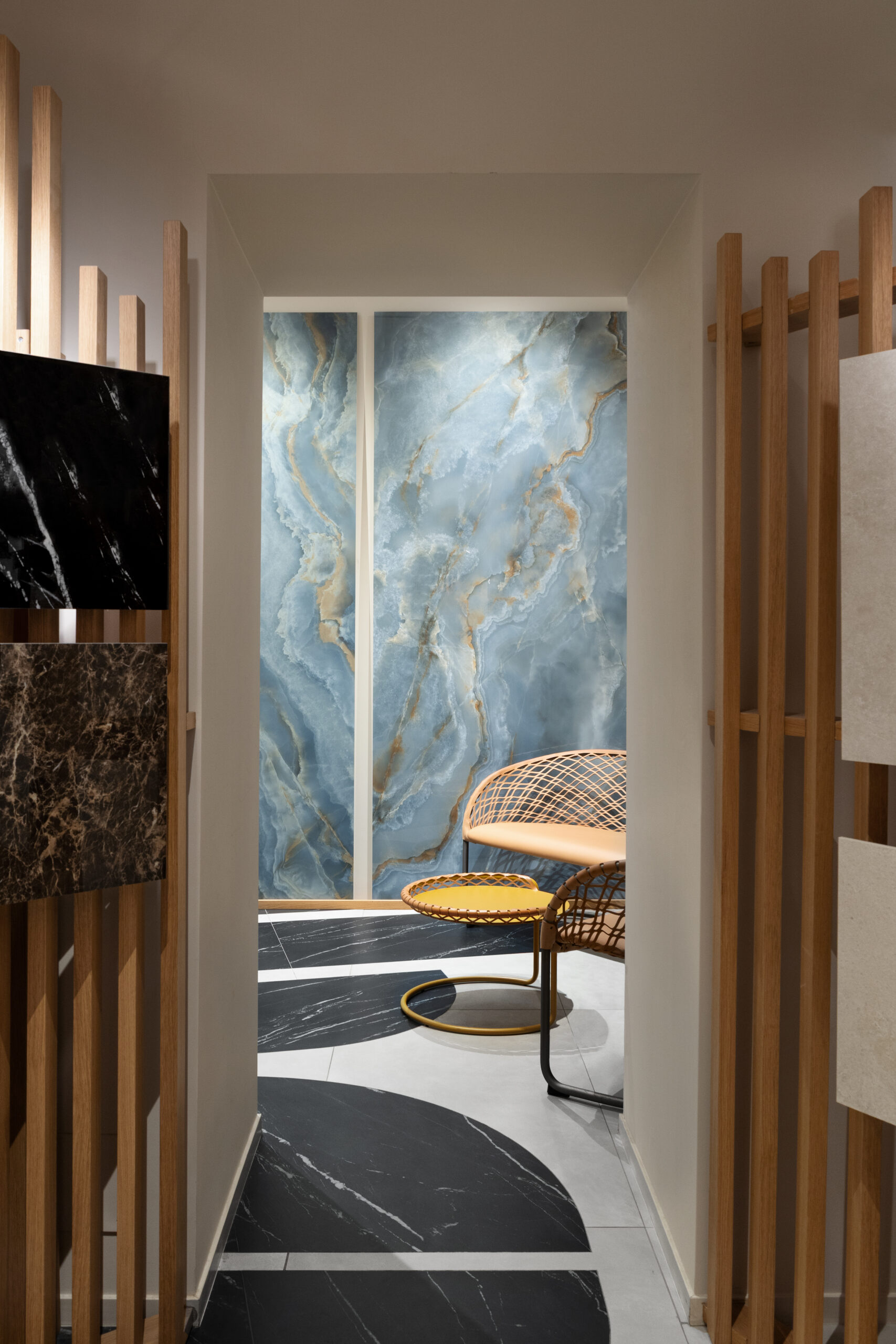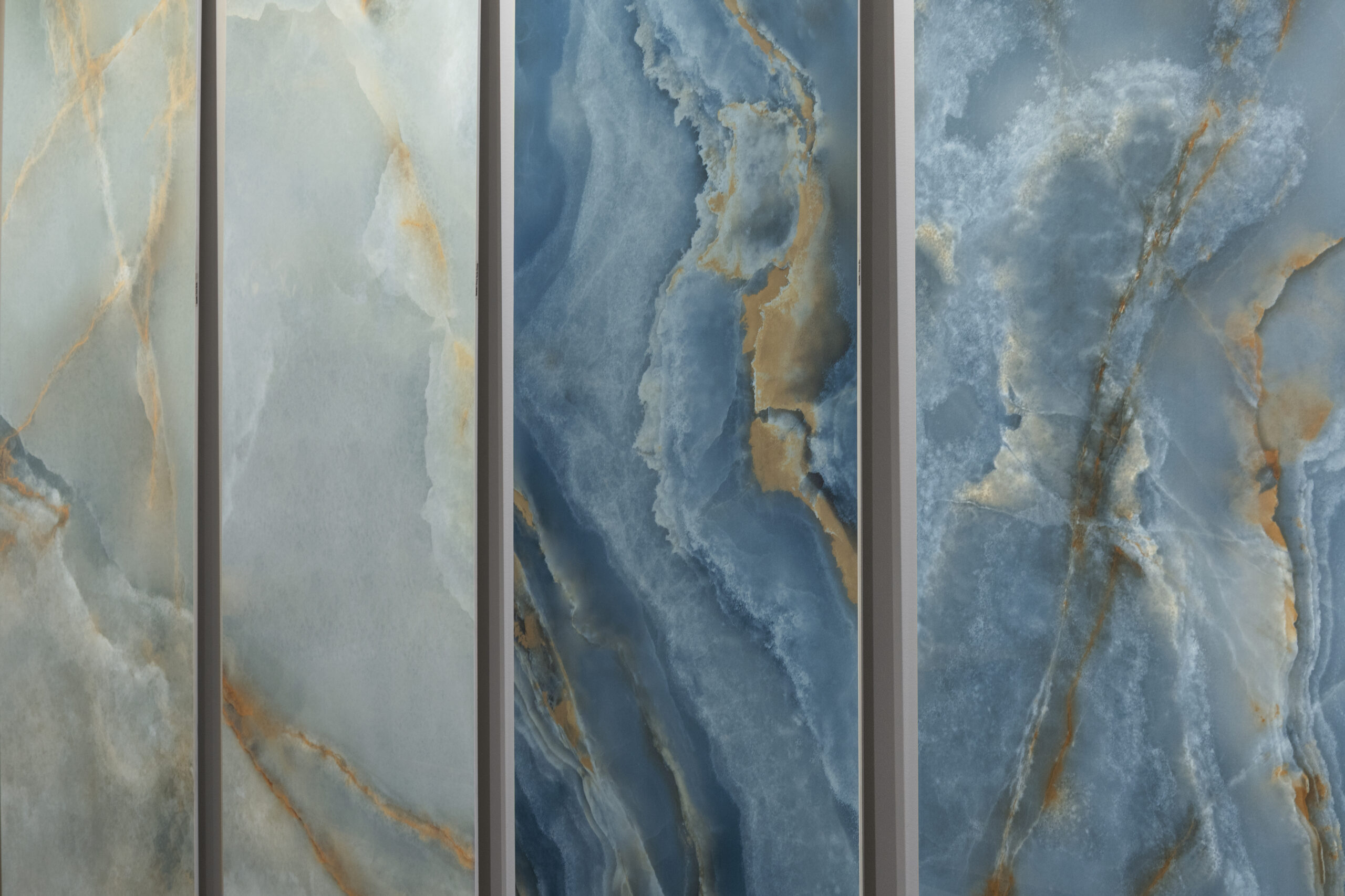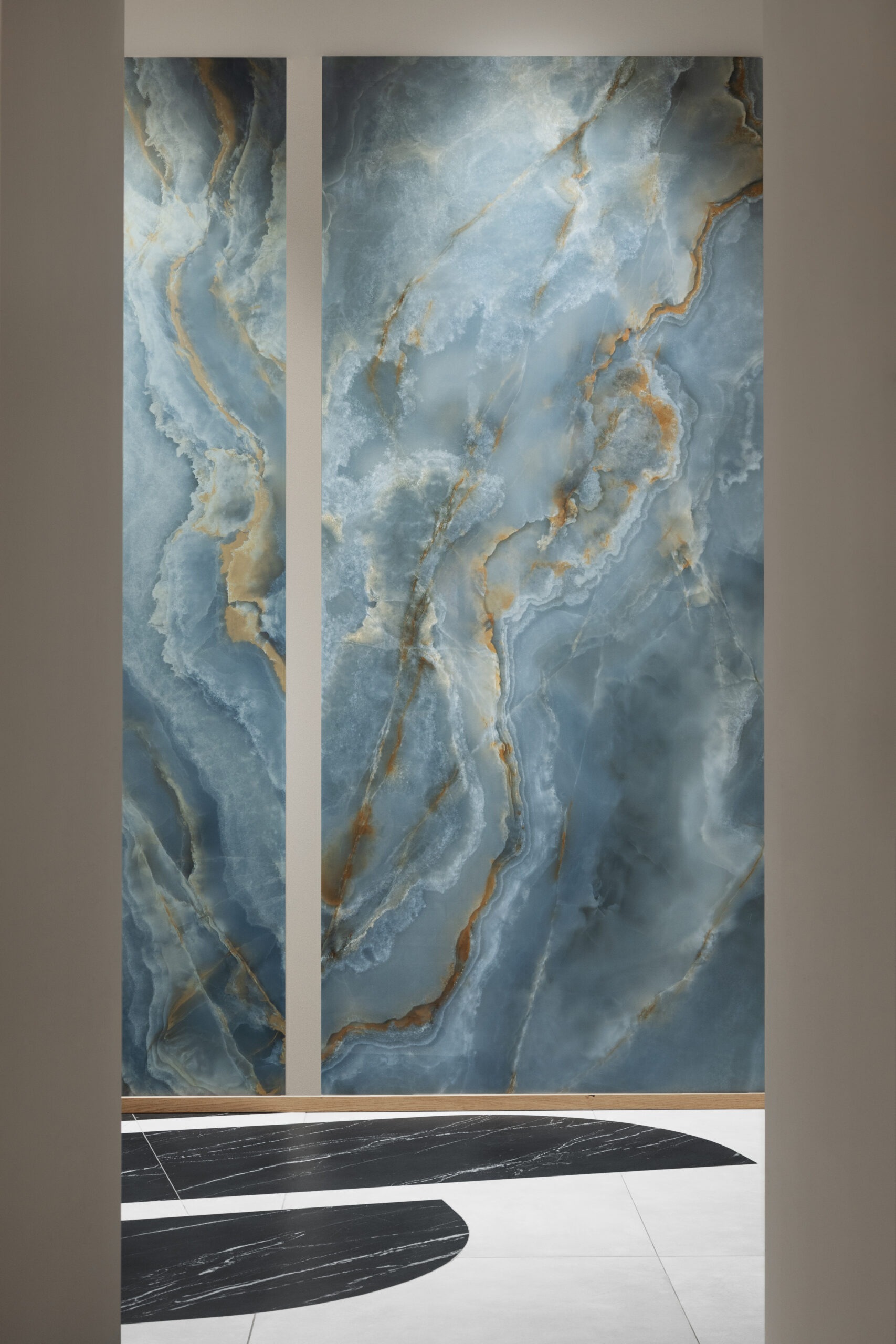 Incanto expands its language with the introduction of five precious onyxes, luminous and sophisticated surfaces that enhance the depth and richness of the material. Nodis, the new wood-effect collection, delivers a natural and balanced sensation, designed for warm and contemporary spaces. Realstone Classica, the new stone-effect collection ideal for indoor and outdoor spaces, expresses essential materiality, while Solida reinterprets the charm of terracotta with a contemporary language.