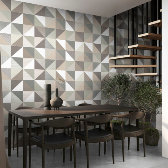 Perfect matching between patterning and substance is achieved during printing thanks to two digital printing passes, which produce a variety of decorative effects: glossy, matt, plain or an ice effect created by uneven application of the vitreous grit. This specialist approach is able to generate infinite variations while conserving all ceramic tiles’ benefits of chemical resistance and mechanical strength, their hygienic properties and their exceptionally easy cleaning, which make them a reliable choice for any public or private location.