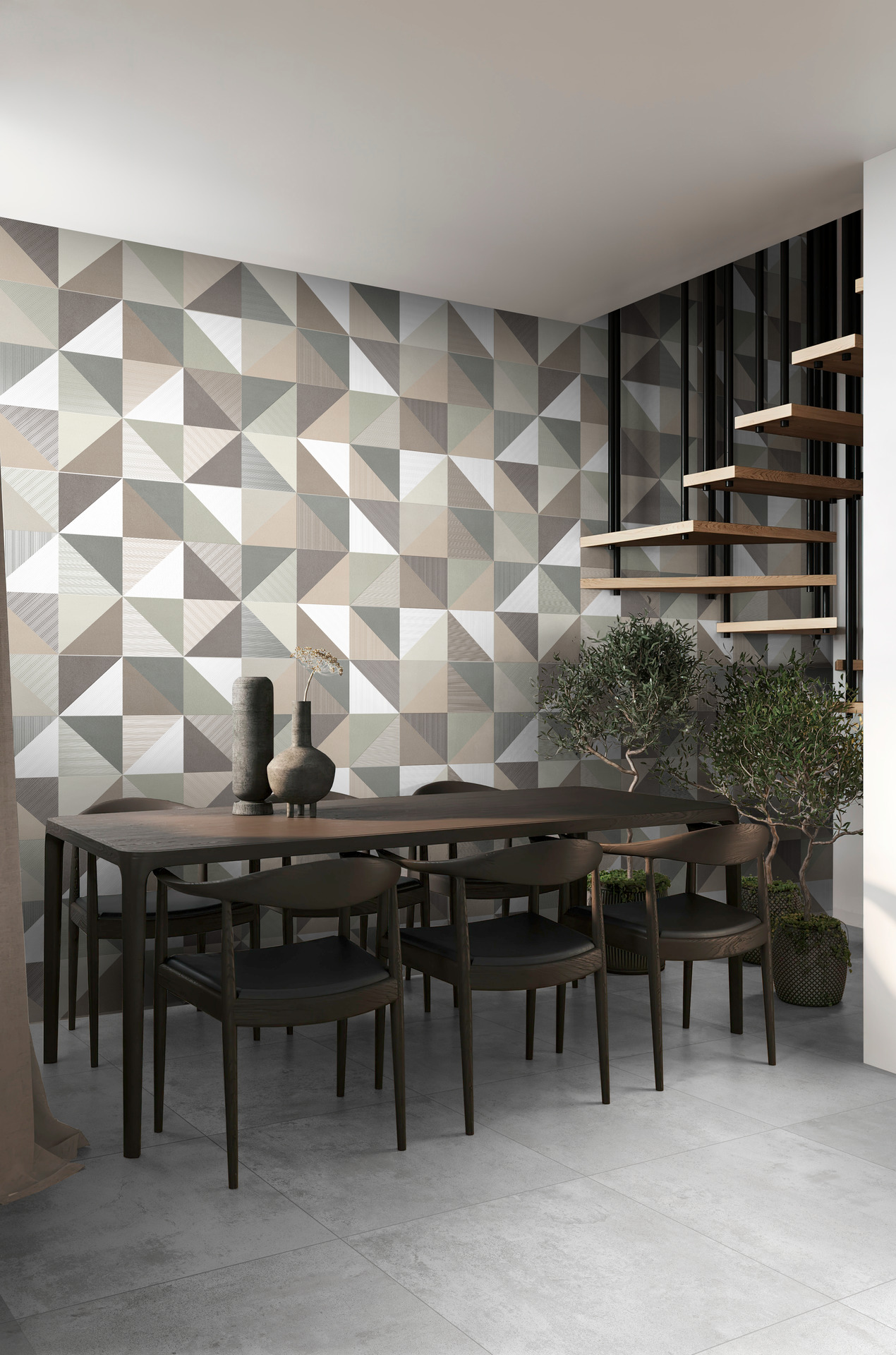 Perfect matching between patterning and substance is achieved during printing thanks to two digital printing passes, which produce a variety of decorative effects: glossy, matt, plain or an ice effect created by uneven application of the vitreous grit. This specialist approach is able to generate infinite variations while conserving all ceramic tiles’ benefits of chemical resistance and mechanical strength, their hygienic properties and their exceptionally easy cleaning, which make them a reliable choice for any public or private location.