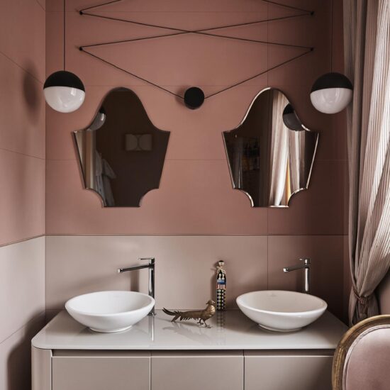 This reinterpretation of resin in ceramic form translates into large yet thin slabs: 40×120 cm and just 6 mm thick. The colour palette of the tiles combines three warm shades with three cool shades: Avorio, Rosa and terracotta on one hand, Bianco, Grigio and Ardesia on the other, in ascending order of saturation.