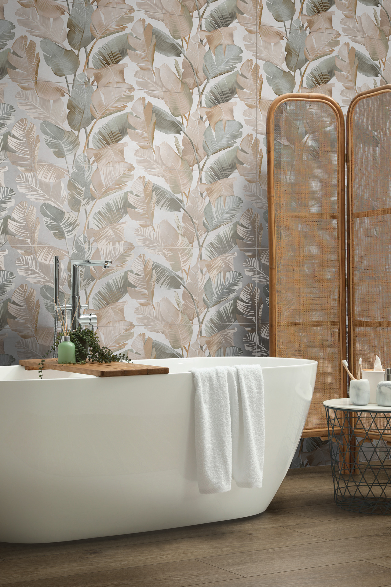 The Papers collection represents a poetic reinterpretation of the wallpaper effect in a ceramic key. Botanical motifs, oriental patterns, and graphic compositions blend on matt or glossy surfaces, perfect for creating accent walls in the living room. The shades are soft but rich in nuances: perfect for those who want a decorative effect that is impactful but not overpowering.