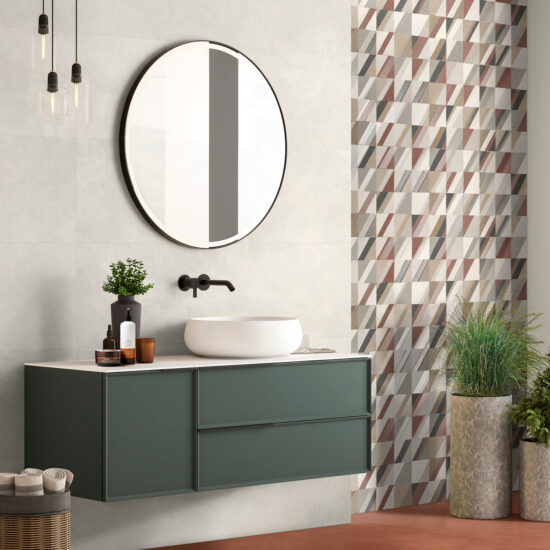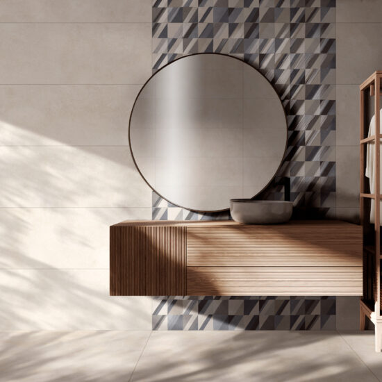 Ragno’s collections offer coverings designed both for those who love minimalist rigor and for those who prefer a more decorative and enveloping aesthetic: in modern living rooms, wallpaper-effect tiles with geometric motifs, sandblasted textures, or light reliefs can turn the wall into an active, almost sculptural architectural element.