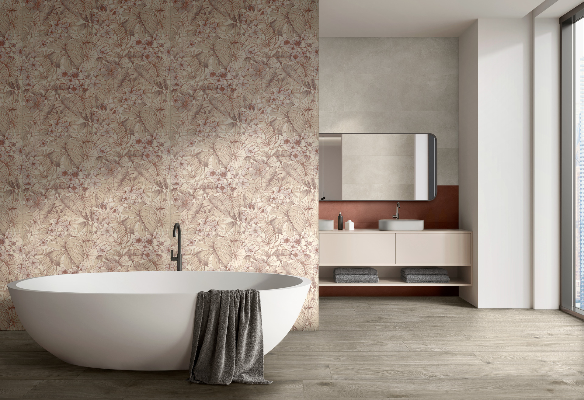 The Ragno collections interpret this trend with a unique and sophisticated style, offering ceramic surfaces that recall the charm of wallpaper with the technical quality of porcelain stoneware and the most advanced ceramics. The motifs range from the lightest and most delicate floral patterns, ideal for romantic or relaxing atmospheres, to graphic and contemporary geometries, perfect for modern and minimalist spaces.