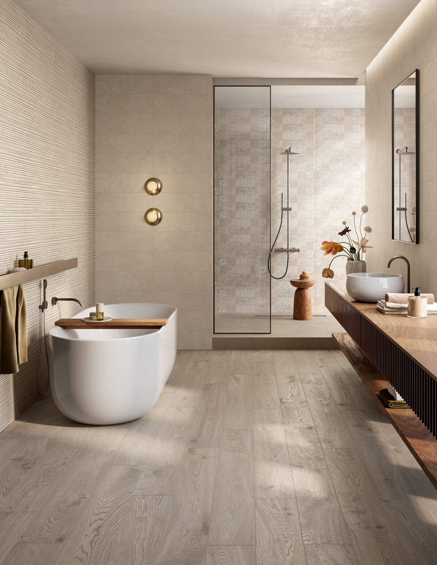 With Tiempo, wall and floor coverings take center stage: an ideal choice for those who want decorative walls and ceramic floors able to combine aesthetics and functionality in every space.