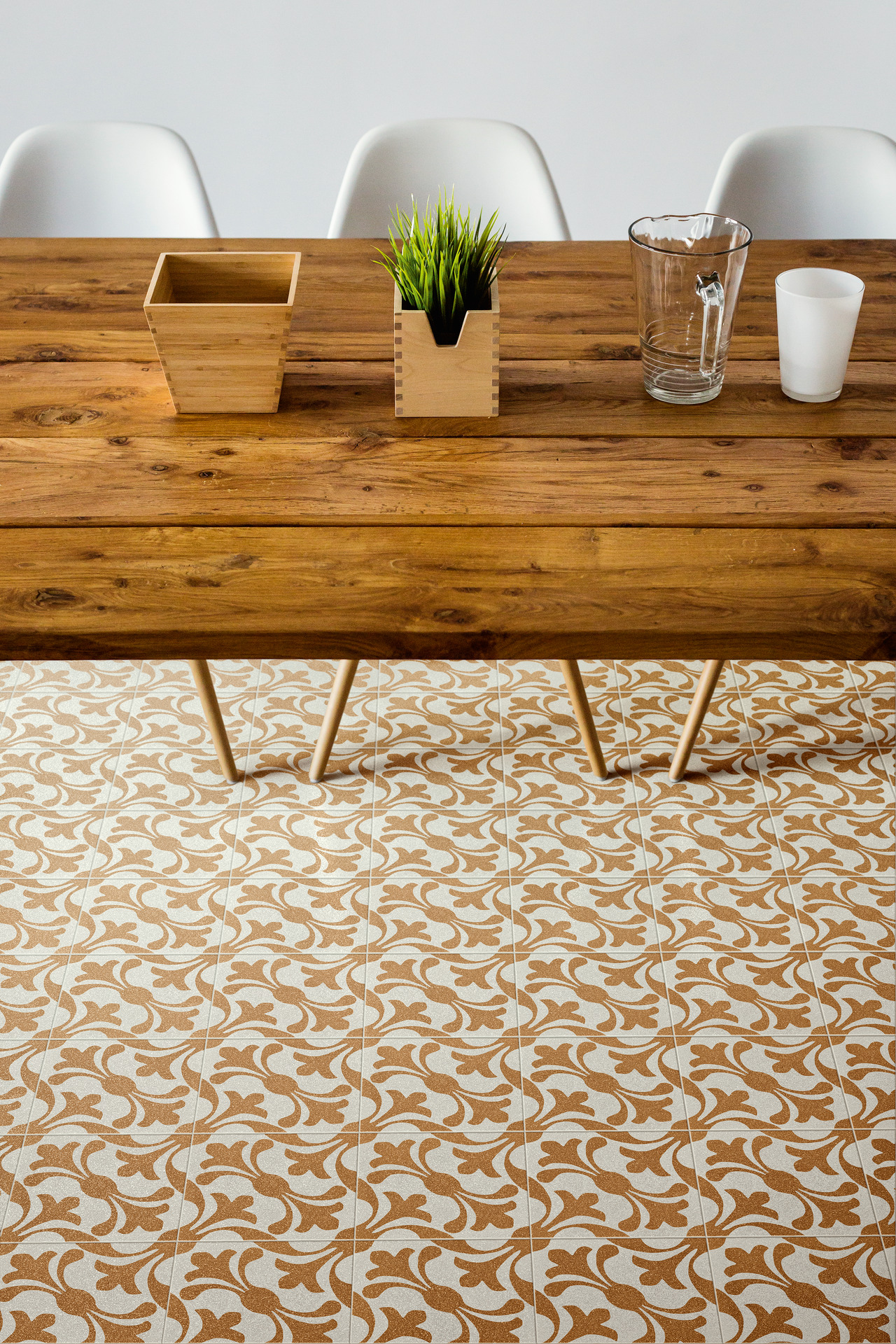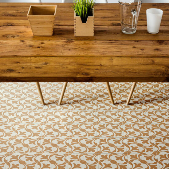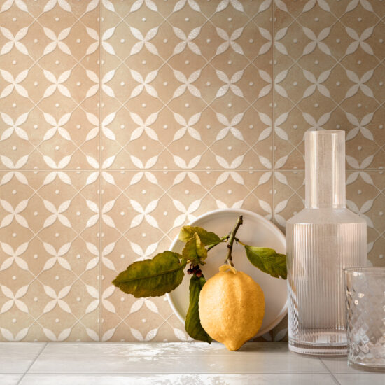 Both tiles with geometric patterns or floral decors and designs with simpler, more modern lines fit perfectly into a rustic context, especially when combined with suitable materials, such as wood-effect stoneware, in the room’s other finishes.