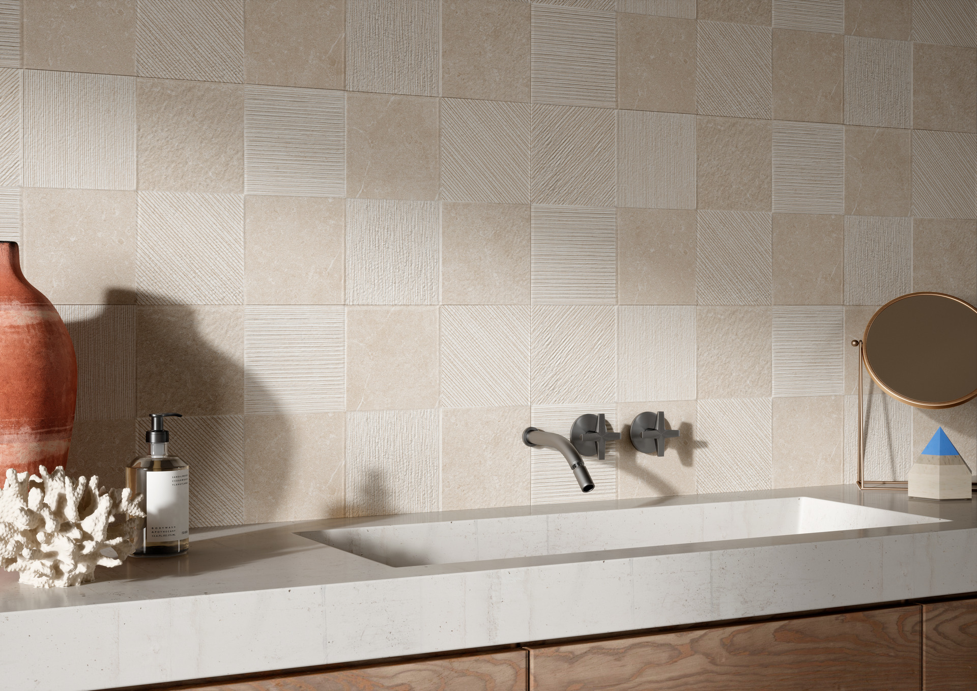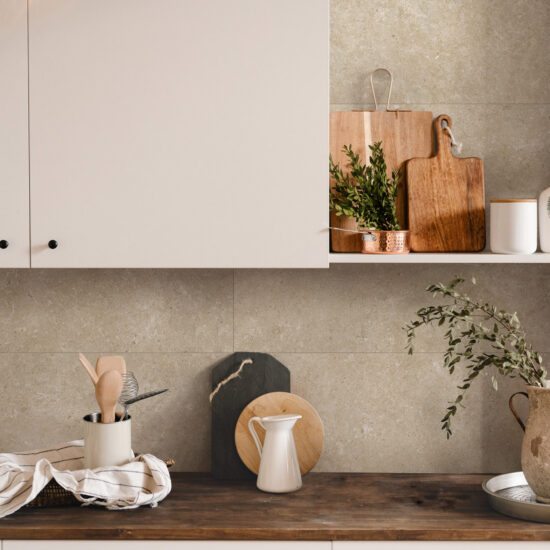 Elegant and infinitely attractive, stone-effect stoneware wall tiles are an excellent choice for your rustic-style kitchen. Ragno’s porcelain stoneware tiles from the Eterna collection accurately imitate the shades of natural stones, combining all these materials’ beauty with the technical properties of stoneware. This collection is available in three shades, Arena, Greige and Blanco, adorned with subtle graphic patterning for a classical yet highly individual final effect.