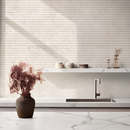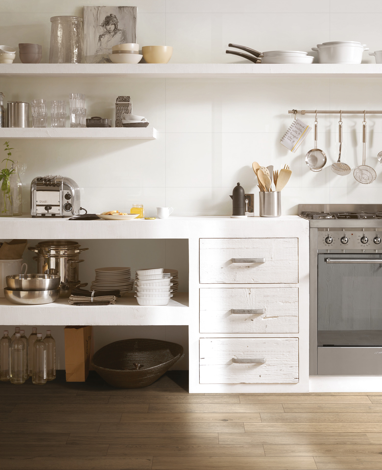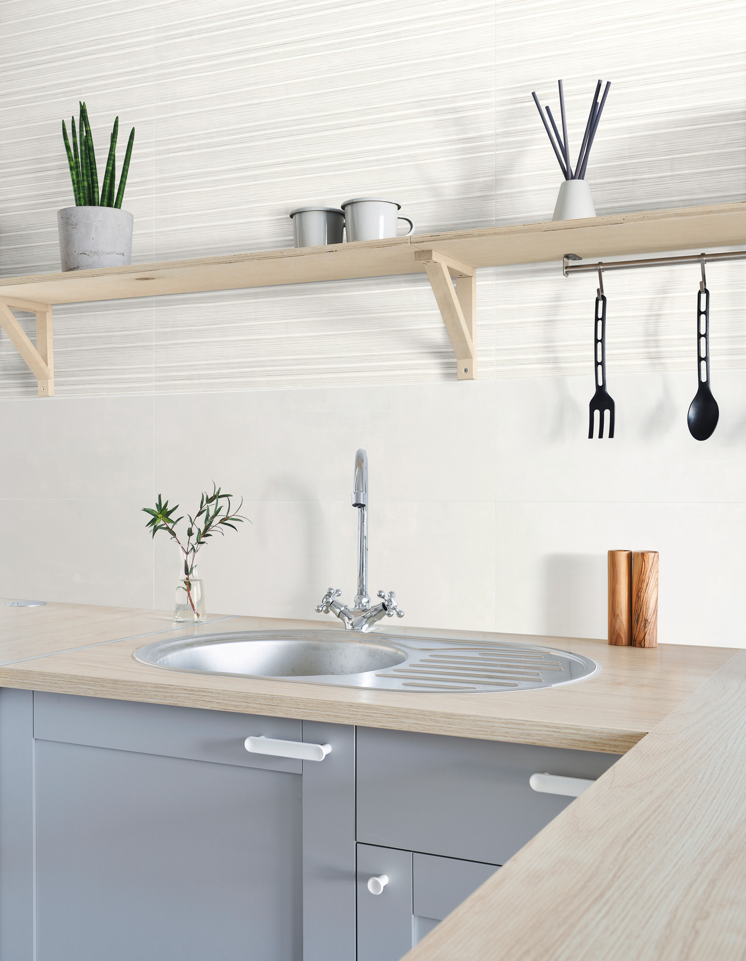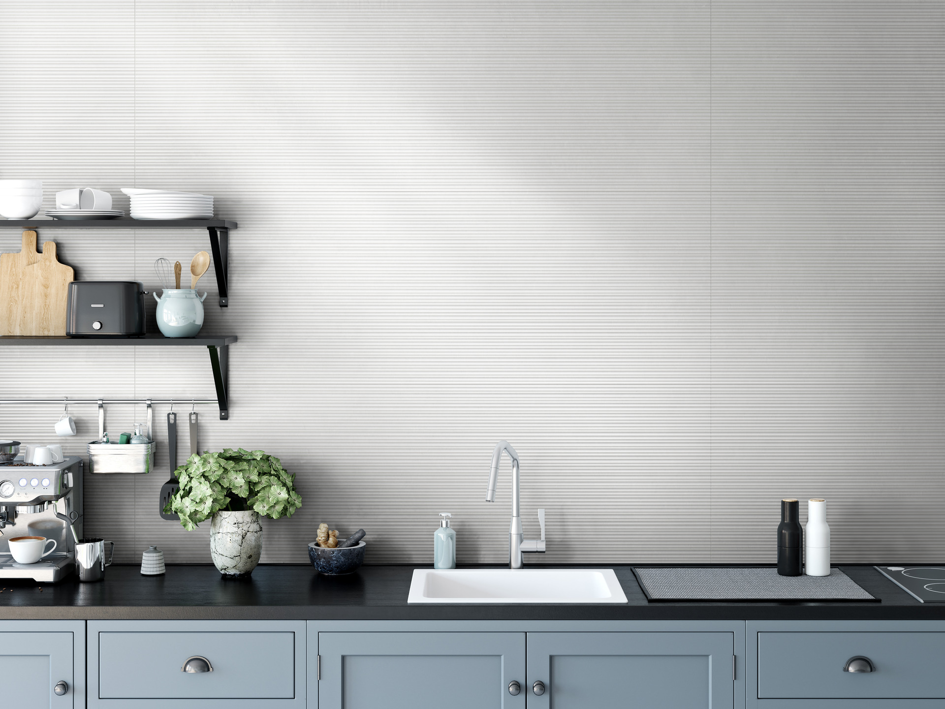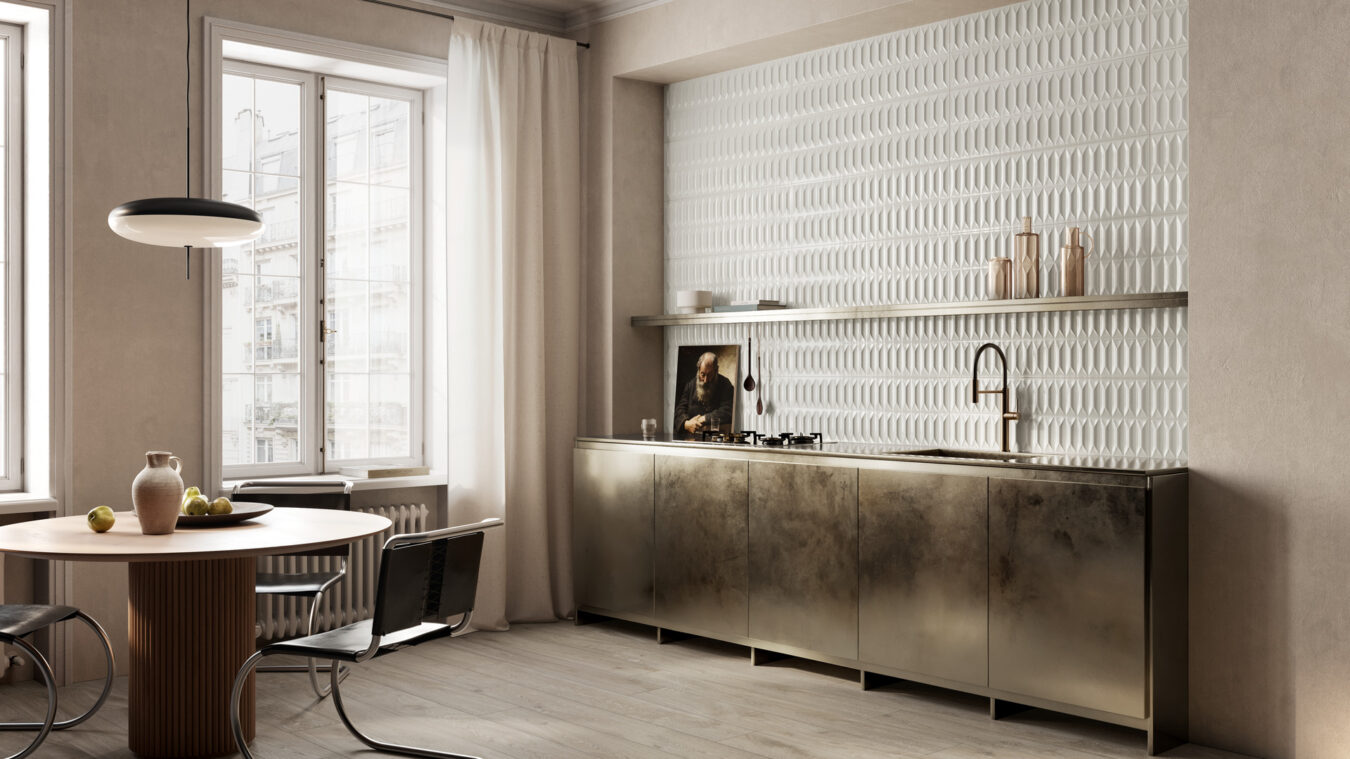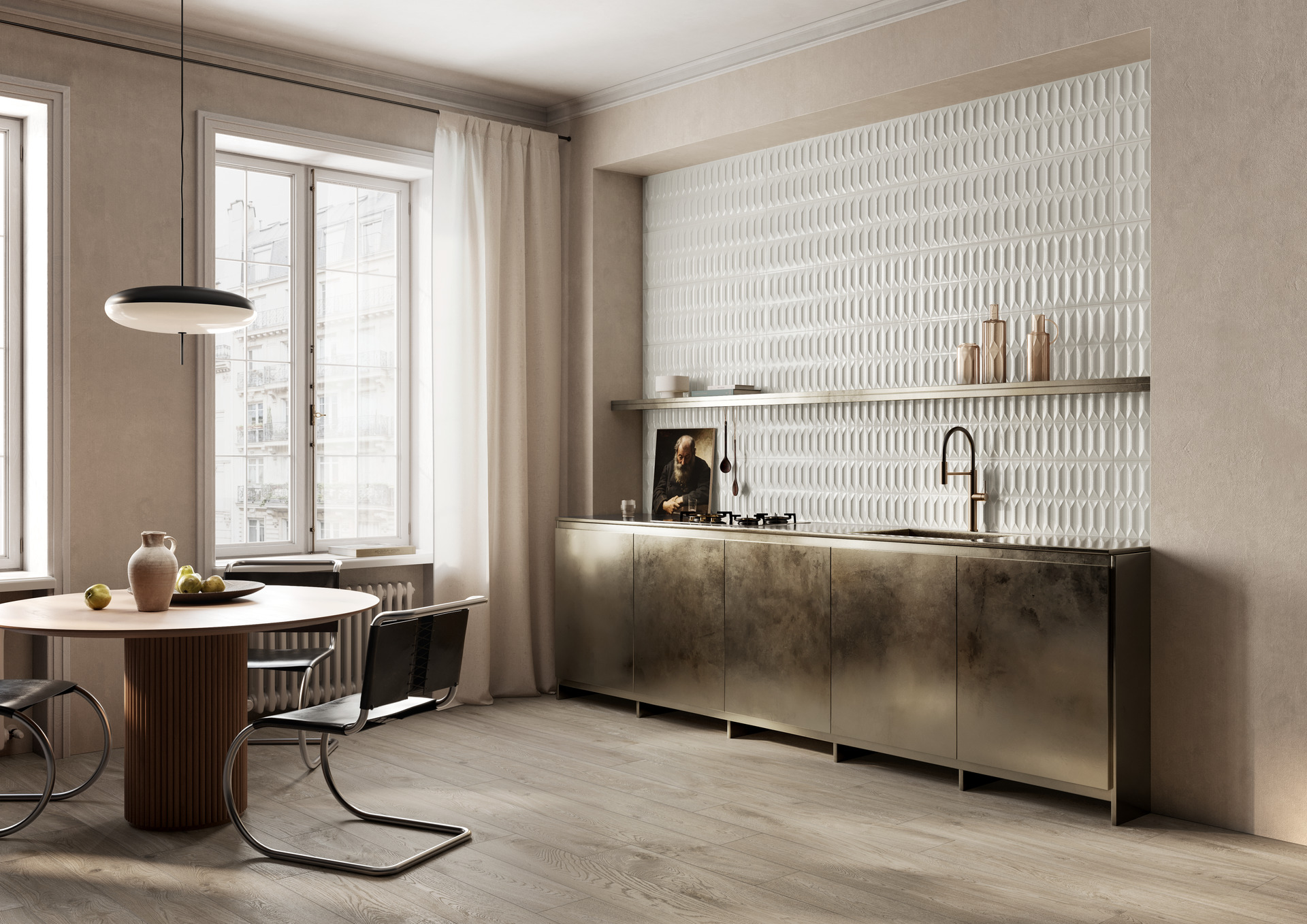 Ragno caters for the total white kitchen concept with porcelain stoneware and ceramic collections that deliver a fine blend of technology, beauty and sustainability. From the three-dimensional shine of Lucida, ideal for covering walls with contemporary graphic motifs, to the glossy glazes and hand-made personality of the Look collection, every solution is designed to meet both functional and decorative needs.