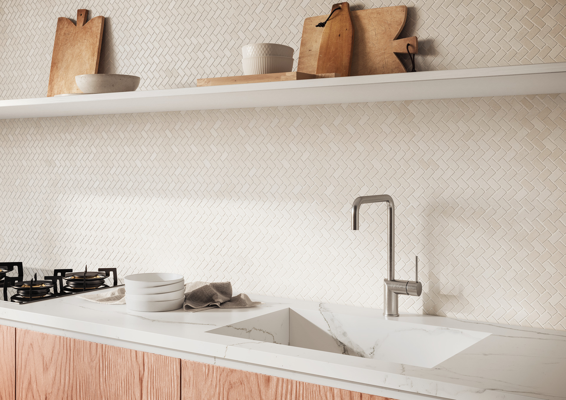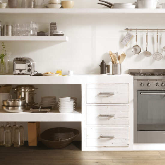 When looking for ideas for white kitchen tiles, it’s essential to opt for convenient, high-performing materials without compromising on refined design and appearance.