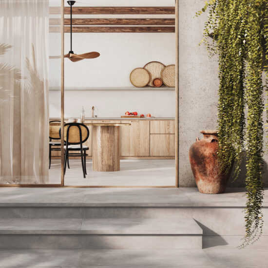 For anyone aiming for a plainer, metropolitan aesthetic, the cotto and cement effect is the ideal choice. The continuous surfaces with no noticeable joints and matt, uniform finishes help to construct a look of sophisticated simplicity, perfect for design schemes where a tactile texture discreetly sets the tone.